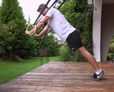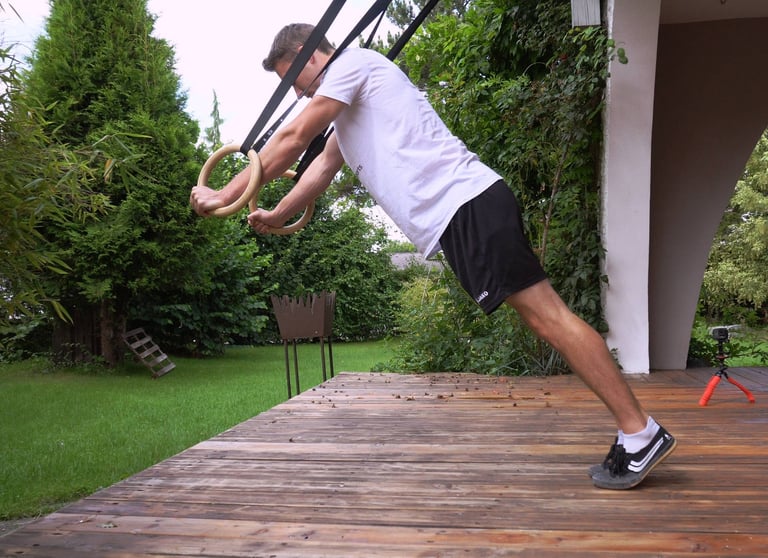 Das Ergebnis ist ein System, das unabhängig macht. Du brauchst keine Hantelbank und keine Mitgliedschaft. Alles, was du brauchst, sind zwei Ringe und einen Ort zum Aufhängen (Klimmzugstange, Deckenhaken, Baum oder Balken).